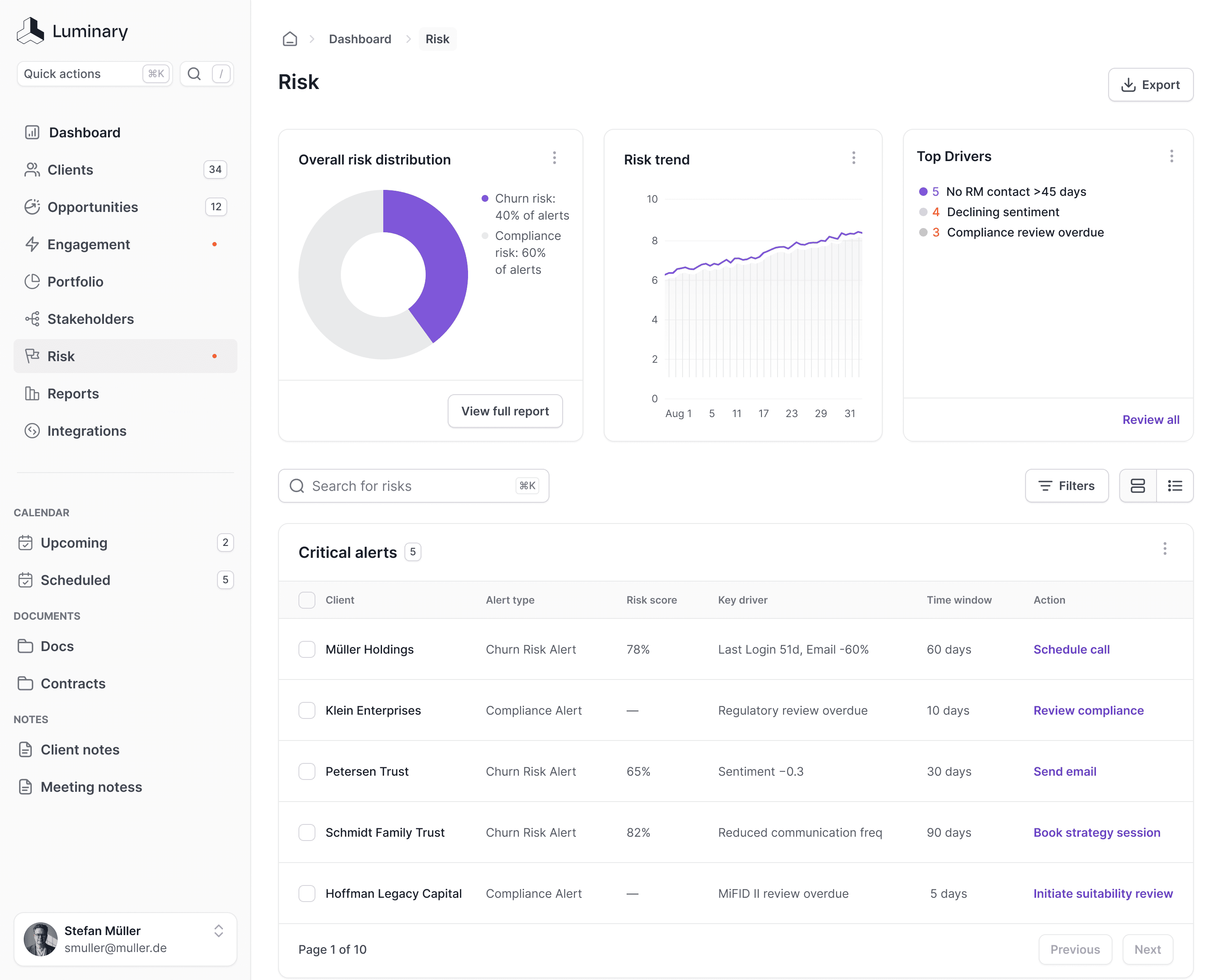 Built-in MiFID II and GDPR automation transforms regulatory burden into a streamlined background process, while providing comprehensive risk monitoring and predictive alerts.